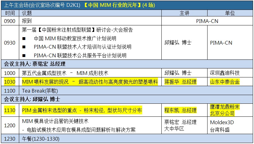 主辦單位:中國粉末注射成型聯盟(PIMA-CN)